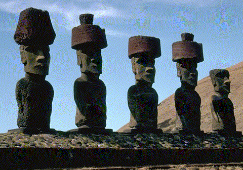 Moai statues with Pukao(hat)