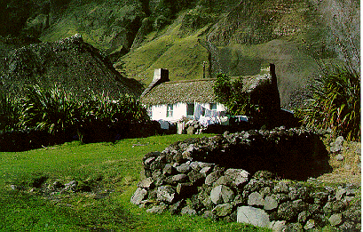 Traditional house thatched with flax (now extinct), next to the 1961 volcano